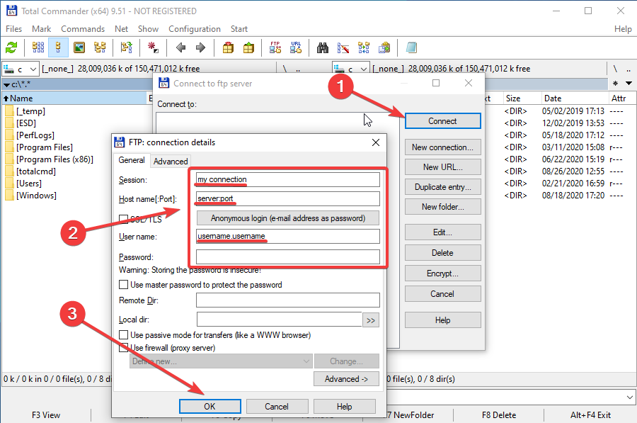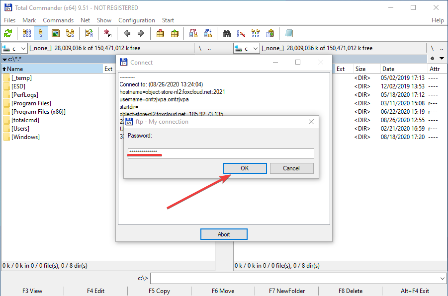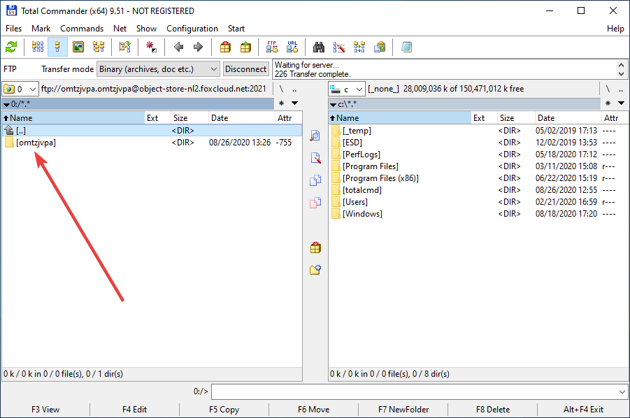In order to transfer files from your computer to FoxCloud object storage you need to establish a connection between them. Such a connection is carried out via an FTP protocol,yes, you cfm and you can perform it by using Total Commander.