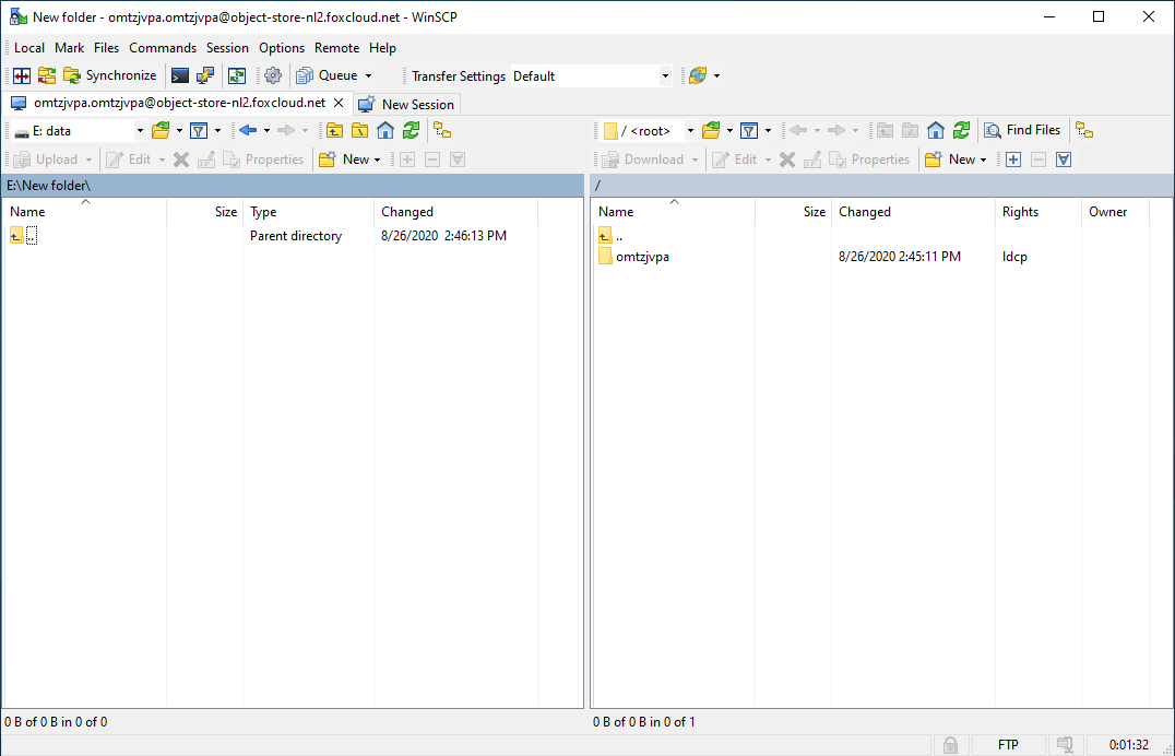 The program will connect to server, and you will see a folder with your container name on one of the tabs.