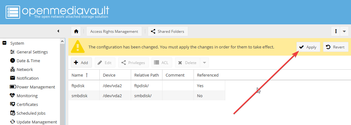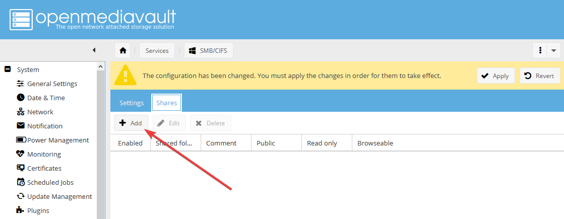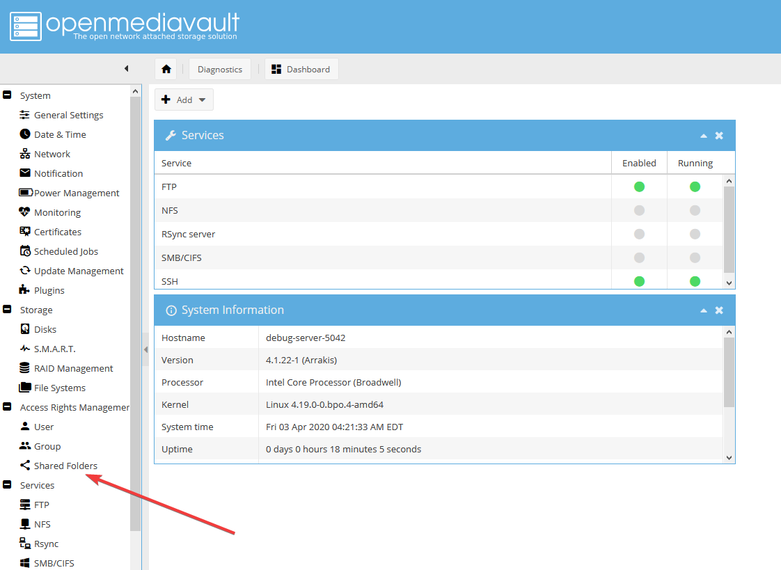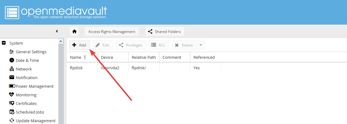 We will explain you how to do this on a server with preinstalled OpenMediaVault (OMV).