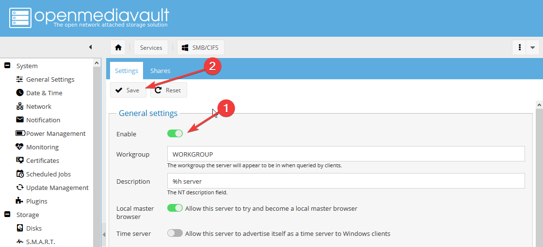 Server Message Block (SMB - Samba) protocol allows to network and share files between computers with incompatible Windows and UNIX / Linux operating systems. With Samba you can adapt common network solutions for Windows. For example you can create a network storage (SAMBA disk) for Windows on the remote server based on OpenMediaVault.