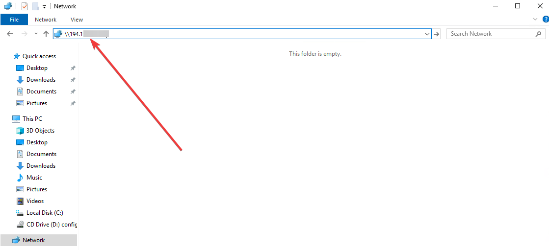 Confirm the changes. - Next open the Network folder on the Windows computer and enter \\ ip-address (your server IP address) in the address bar.