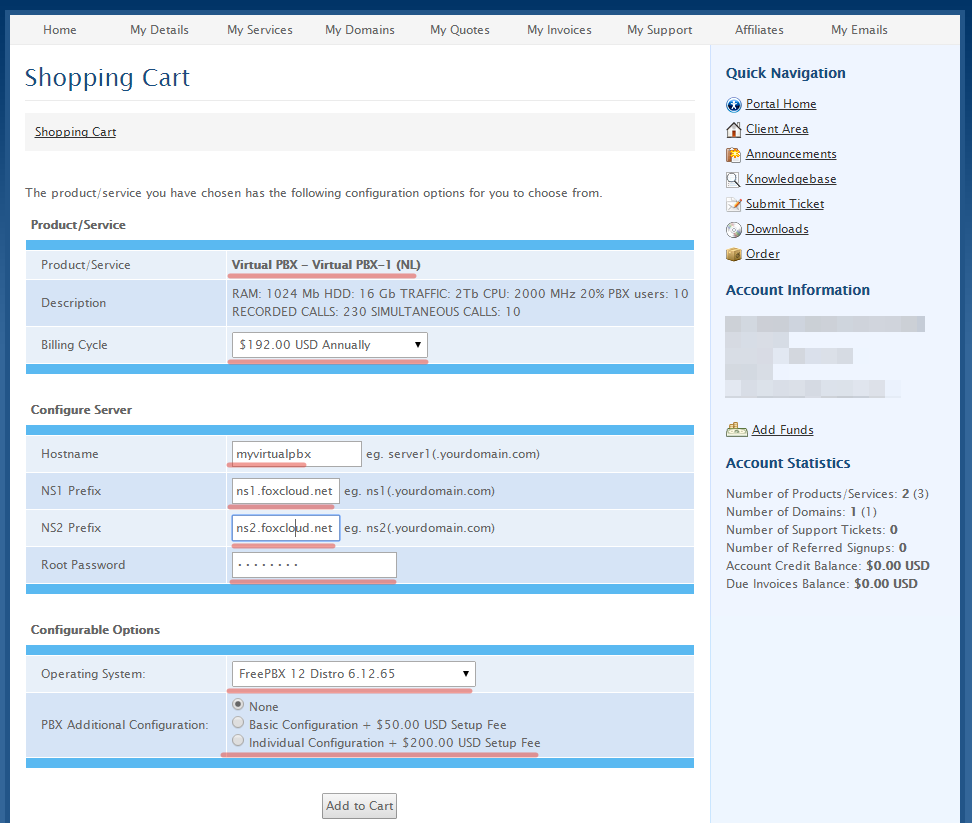 The longer pay period means the higher discount, location of your server based on requirements (your location, directions of incoming and outcoming calls, client location and e.t.c.). Default OS is "FreePBX 12 Distro". If you have questions here you may contact support.