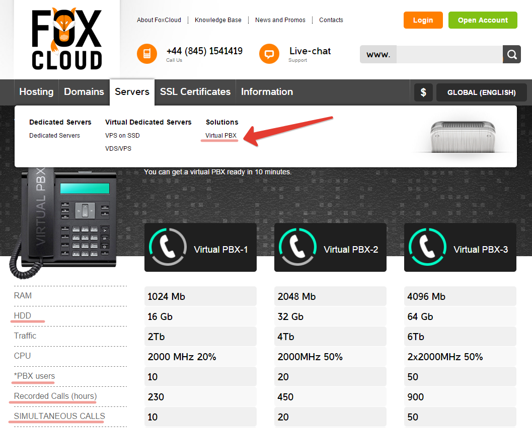 If you want to order "Virtual PBX" open "Servers > Solutions > Virtual PBX".