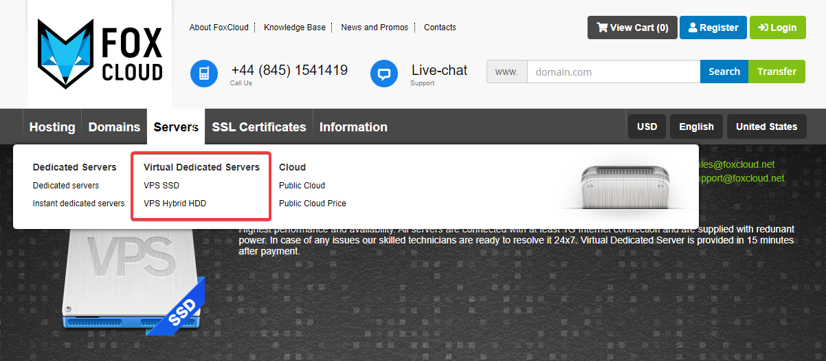 1. Place the mouse on Servers tab from the site main menu and select virtual server SSD or Hybrid HDD