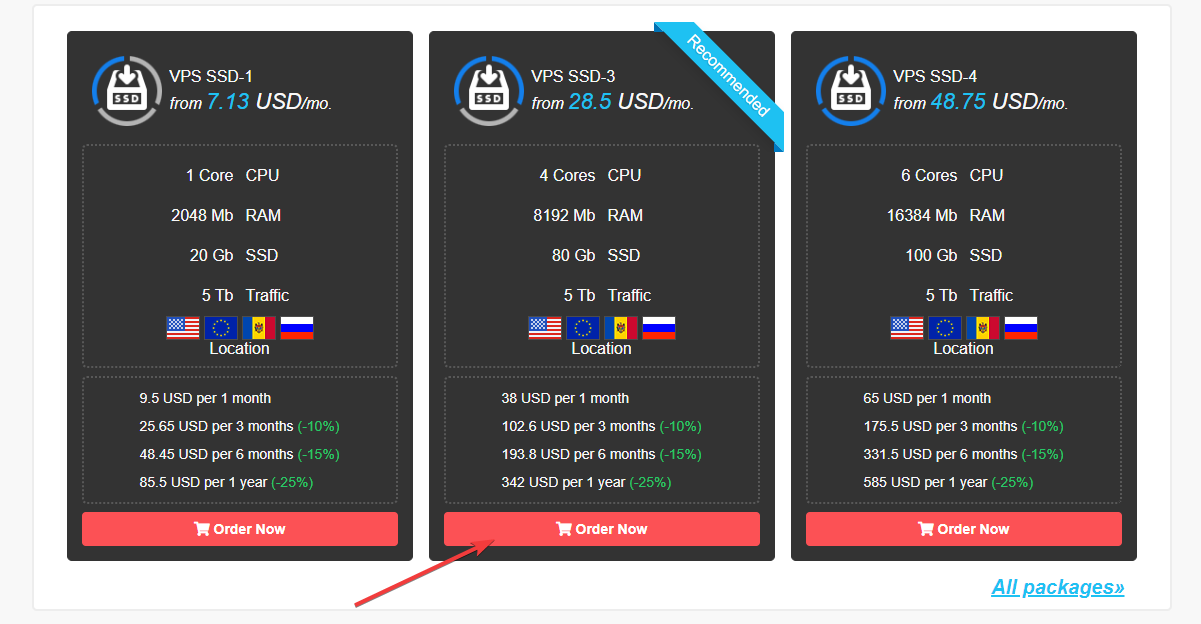 2. Choose the most suitable tariff plan and press the "Order" button!