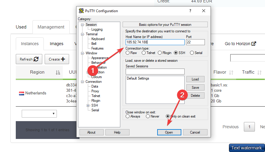 In order to connect to a virtual server you need to use a remote access client. We recommend you to use the free utility Putty.