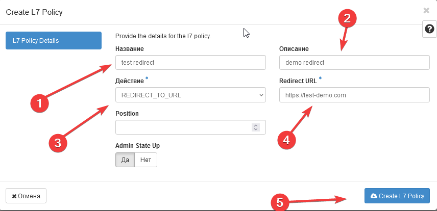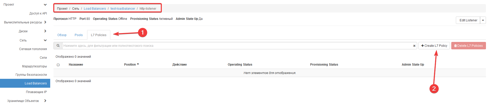 2. In the opened window, go to the L7 Policies tab -> Create L7 Policy.