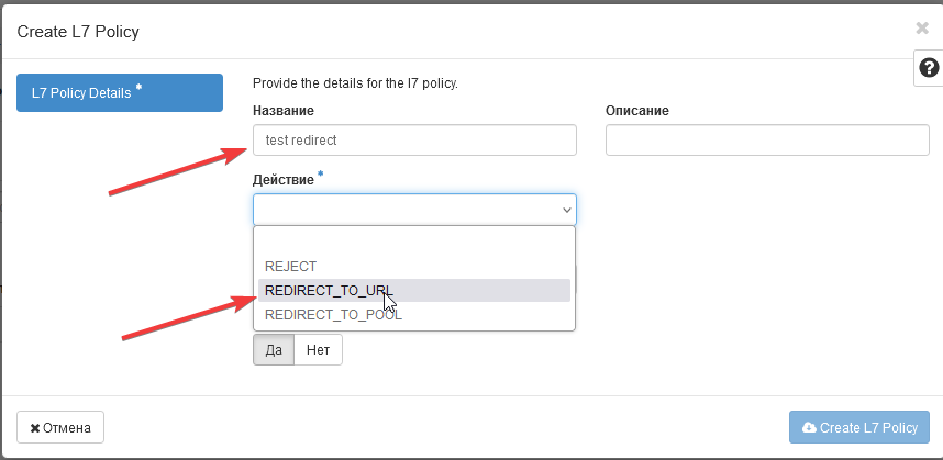 - Click "Create L7 Policy"