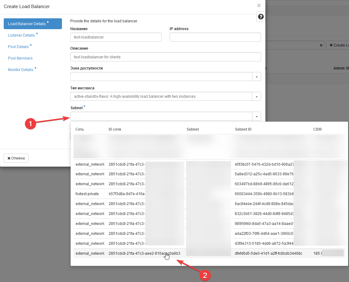 4 - Select Subnet: Choose the subnet in which the load balancer will be created. It is important that there are free IP addresses in this network.
