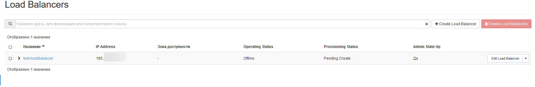 7 - The load balancer is created. Wait for the status to be "Active" in the "Provisioning Status" to continue the configuration.