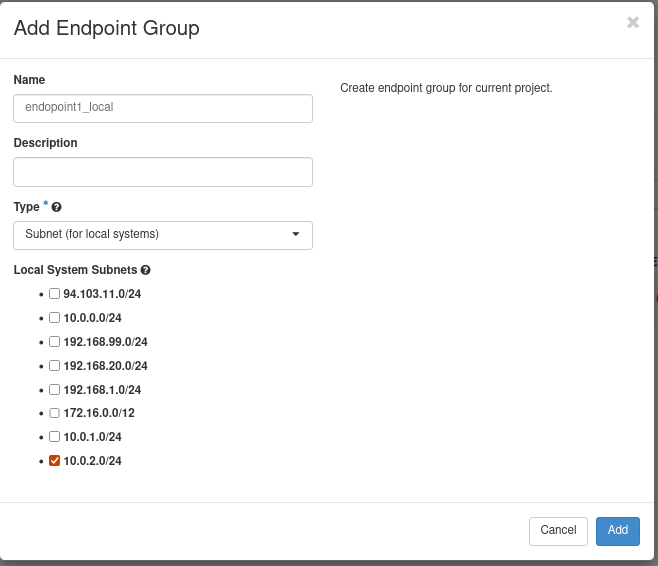 - Dst. Address 10.0.2.0/24 (local network on the VPNaaS service side)