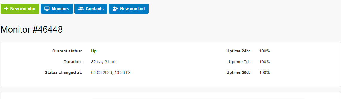 Set up monitoring in your personal account to know that your sites and servers are monitored by reliable tools and you will be able to respond to incidents in time.