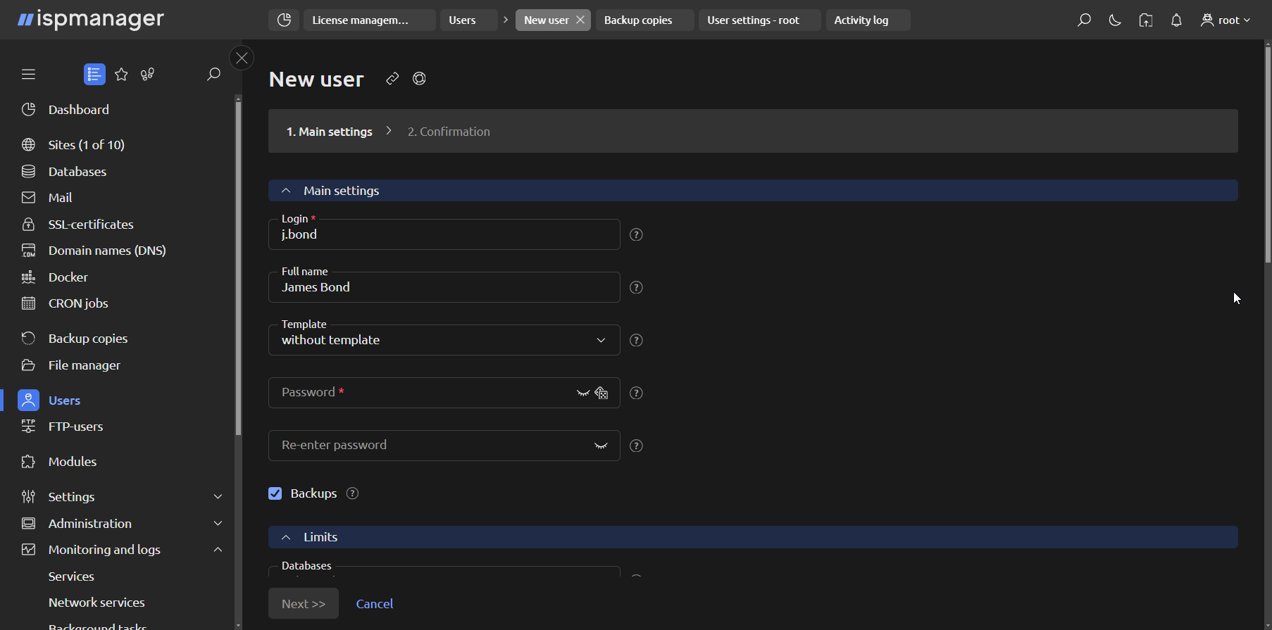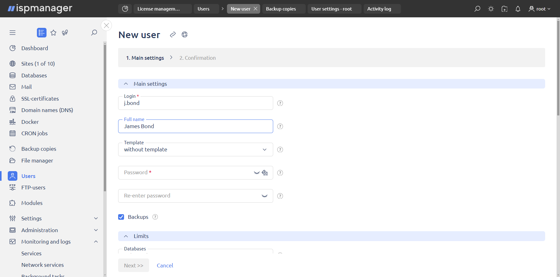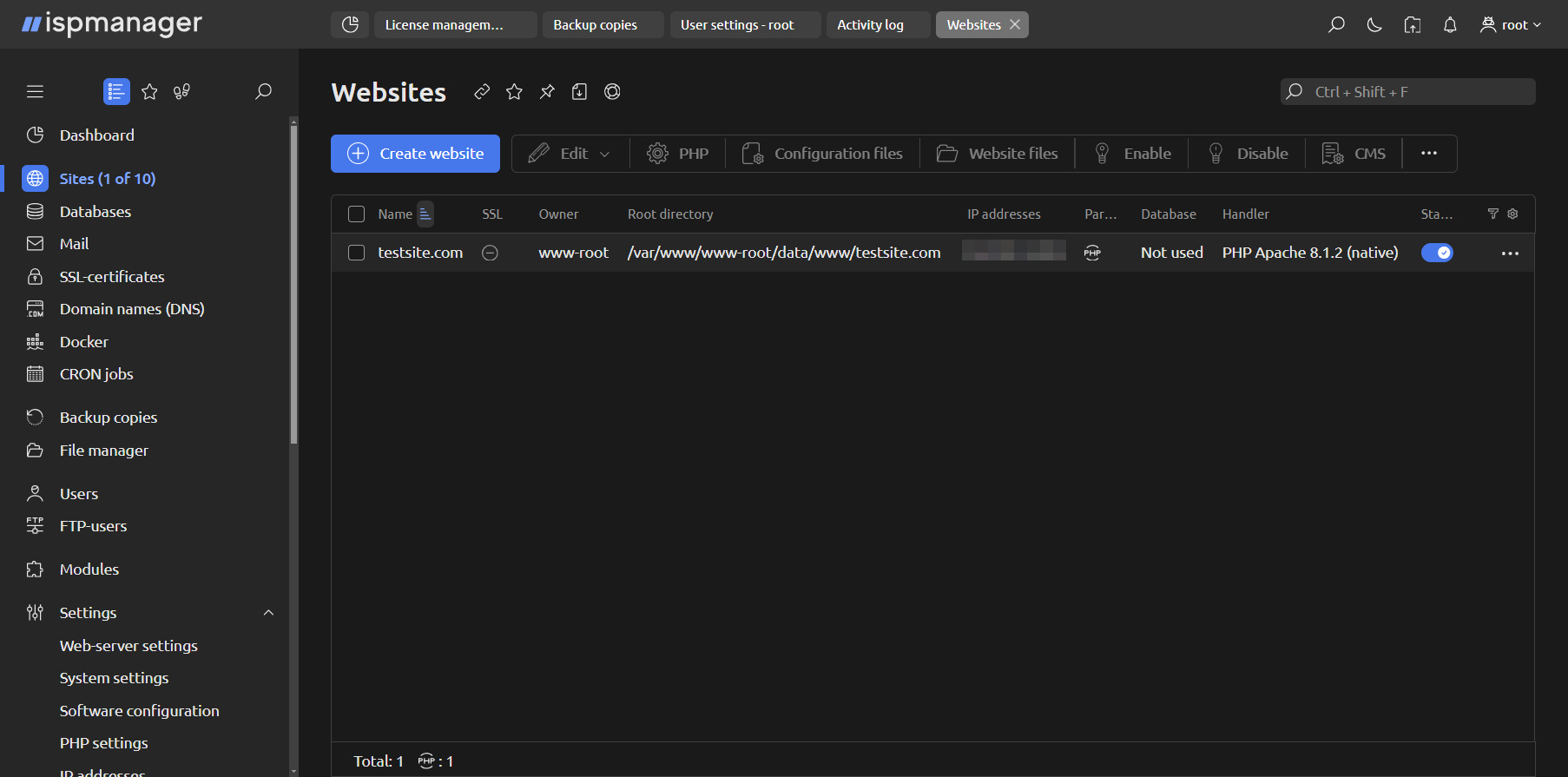 Also, the maximum number of sites depends on the type of ispmanager license. The base rates include an ispmanager lite license that allows you to host up to 10 domains, including subdomains. You can upgrade your license at any time.