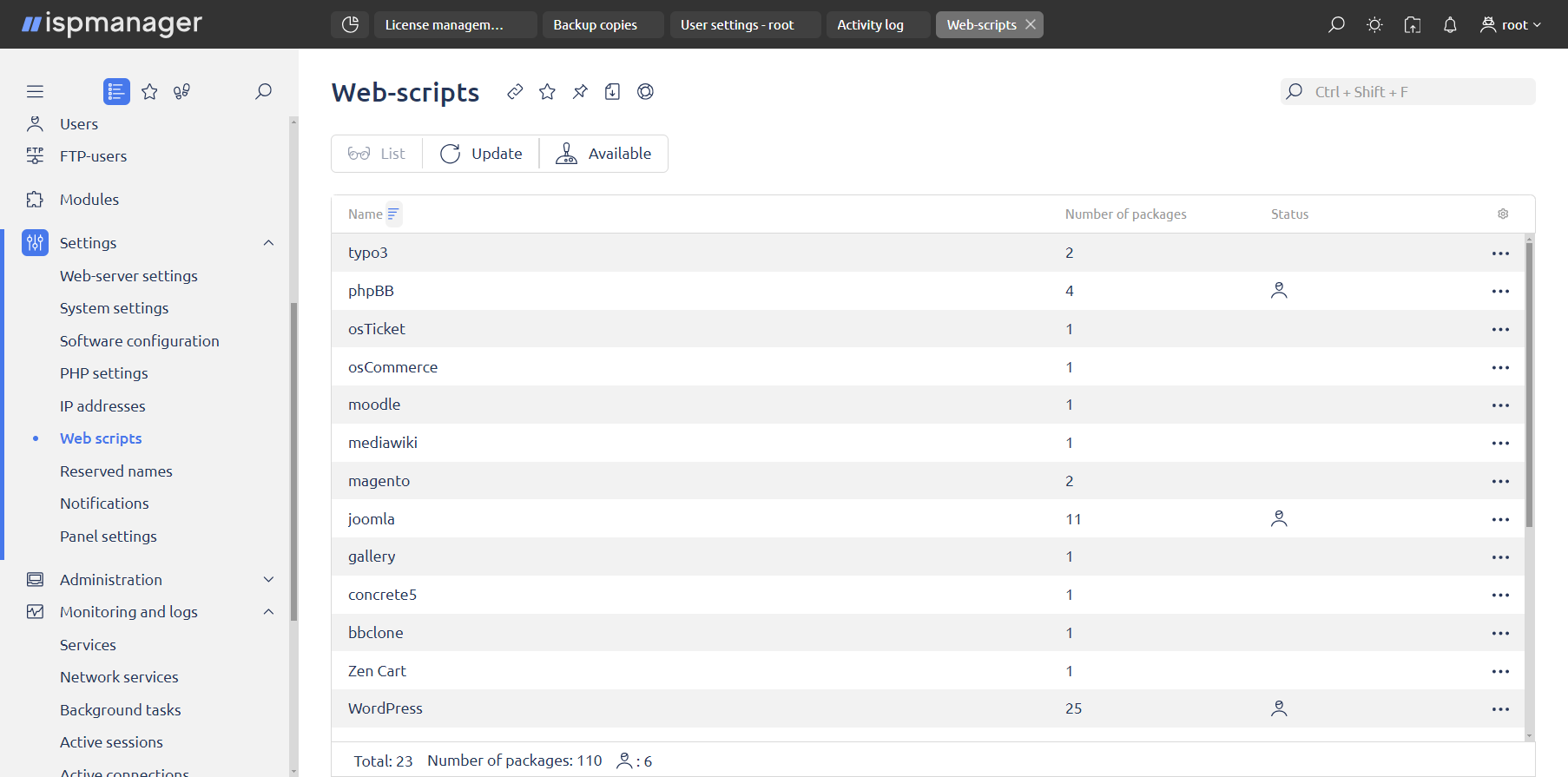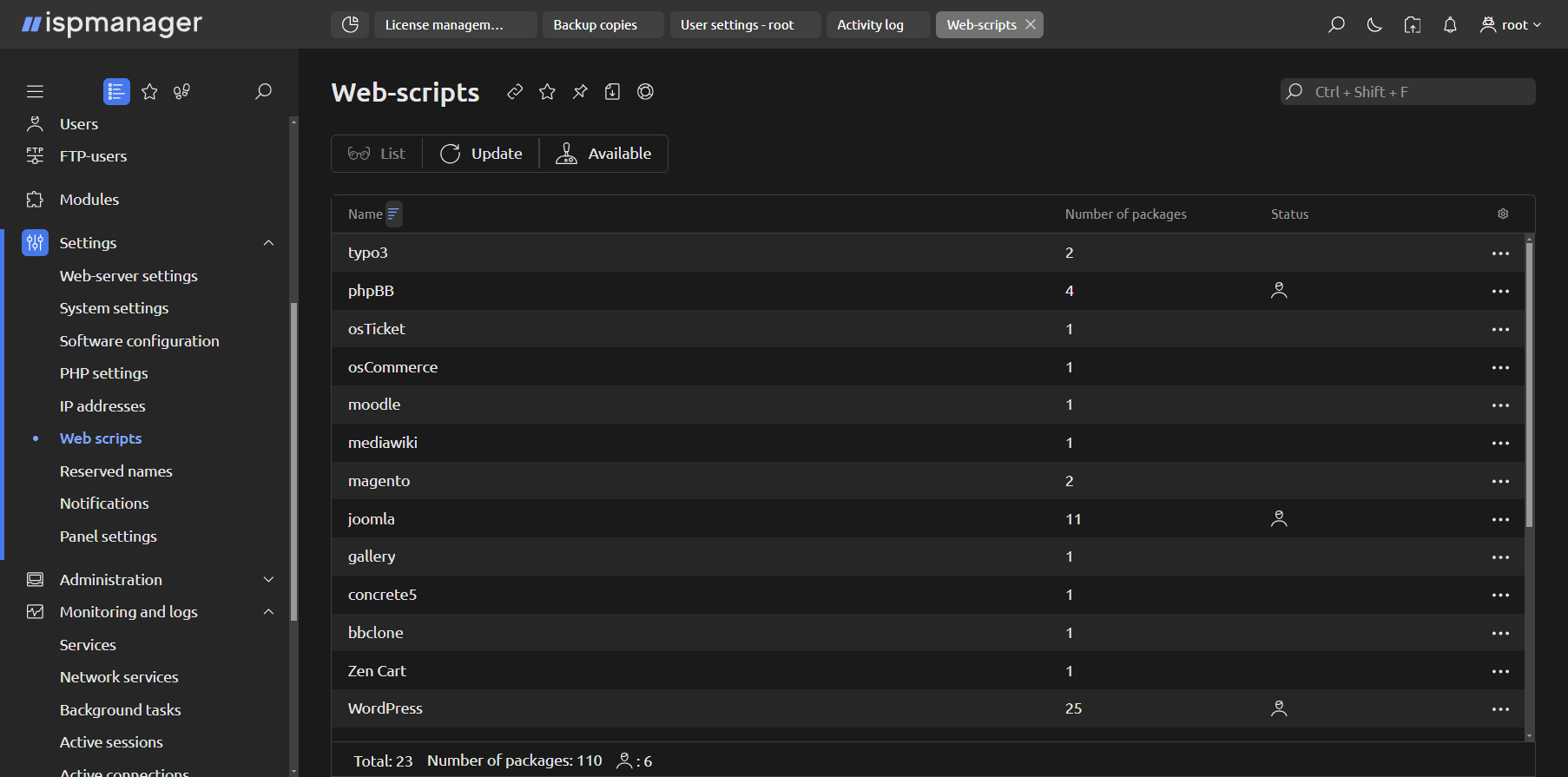 • Ispmanager web server control panel.